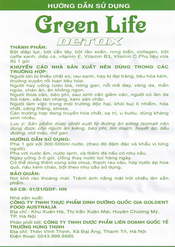 Green Life Detox, Diệp Lục, Tảo Xoắn, Cần Tây- Hỗ Trợ Làm Đẹp Da, Trắng Sáng Da, Giảm Cân